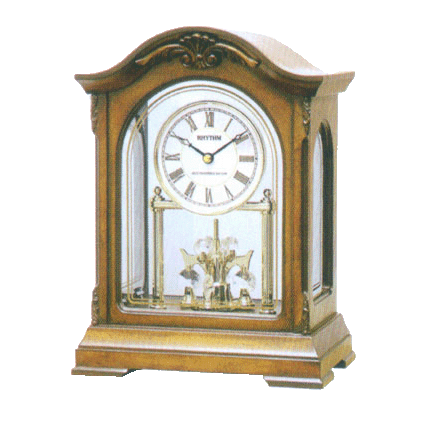 简介:木制钟壳,音乐机芯,夜间自动止鸣。旋转摆。